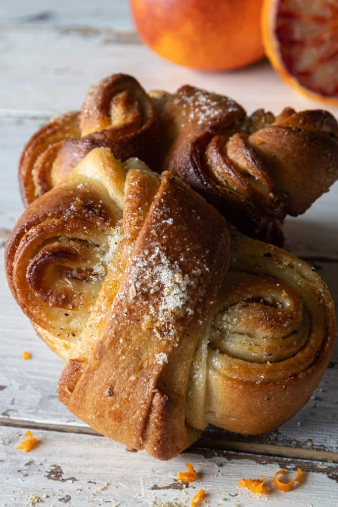 They’re shaped as twisted, knotted buns, so they’re not the traditional round cinnamon roll style, but still come out beautifully layered with signature swirls. If you love spiced rolls like my hot cross buns, you’ll love this blood orange twist for brunch or dessert with a cup of coffee or tea.